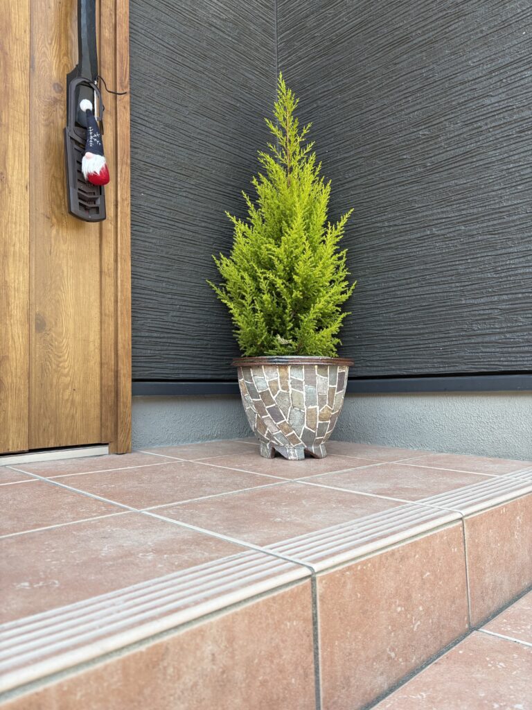 また瓦の味わいがよく出ている和模様もとても素敵。瓦で作られた表札も味わい深い。